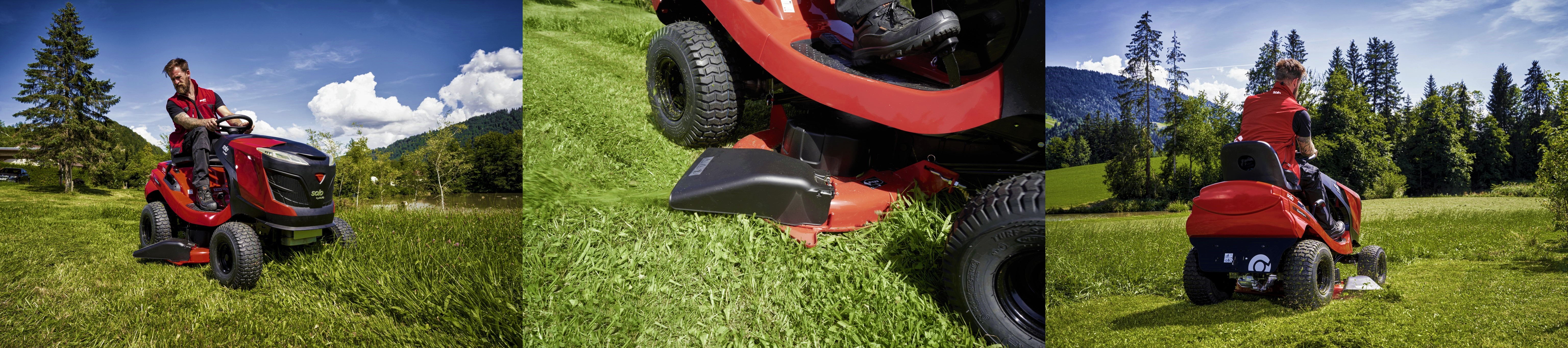 Podstawowy traktorek z linii produktów Comfort o szerokości koszenia 95 cm jest idealny do szybkiego i wydajnego koszenia dużych ogrodów. Kosiarka T 15-93.3 HDS-A Comfort jest napędzana silnikiem AL-KO Pro 450 o mocy 8,5 kW. Wysokość koszenia można regulować w jednym kroku w 6 krokach od 30 mm do 80 mm. Trwały zespół tnący wykonany z blachy stalowej zawiera dwa noże do czystego koszenia trawy i można go usunąć za pomocą prostych uchwytów. Opatentowany mechanizm wolnego koła chroniącego skrzynię biegów. Zimą pług śnieżny można również przymocować z przodu ciągnika kosiarki T 15-93.3 HDS-A Comfort. Bardzo duże opony o przekątnej do 18 cali zapewniają dobrą przyczepność i dobry postęp na każdej powierzchni i w każdym terenie. Siekana trawa jest wyrzucana z boku ciągnika. Zarówno poręczna kierownica, jak i wyraźne elementy sterujące zapewniają dodatkową wygodę.